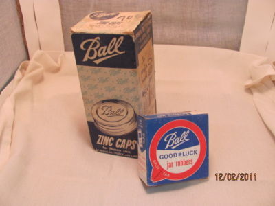 Title (ebay affiliate link): 12 Vintage Zinc Ball Canning Jar Lids, milk glass liners, Ball jar Rubbers NIB