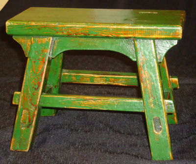 Antique Early Cricket Foot Stool Mortise & Tenon Old Green Paint Primitive Maine