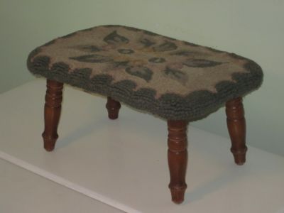 Title (ebay affiliate link): Vintage Rectangle Foot Stool Green Floral Hooked Rug Top