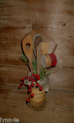 Title (ebay affiliate link): Primitive Farmhouse Wood Barrel~Wood Spoons&Utensil~Gathering~Bay Leaves~Label