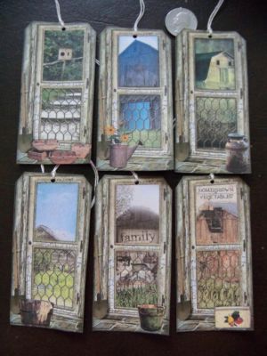 Title (ebay affiliate link): primitive country PRIMITIVE TAGS primitive MAKE-DO grungy PRIM ORNIES folk art