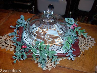 Title (ebay affiliate link): WOOD TRAY/GLASS DOME GATHERING WITH GINGERBREAD COOKIES