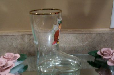 Title (ebay affiliate link): Vintage glass beer glass in shape of boot, German pic & words.