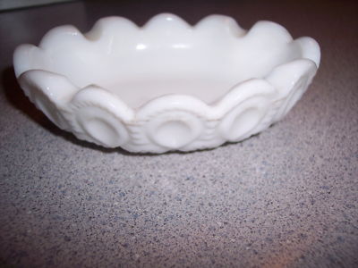 WHITE MILK GLASS OVAL INDIVIDUAL OVAL ASHTRAY IN THE MOON & STAR PATTERN