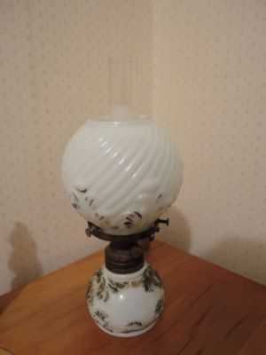 Title (ebay affiliate link): Antique Victorian Milk Glass Miniature Lamp w Ball Shade Gold Paint