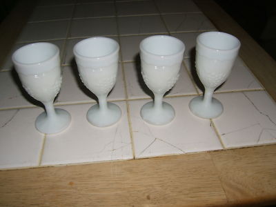 Title (ebay affiliate link): 4 Vintage Imperial Milk Glass Grape 4 1/8" Goblets Sherry Glass