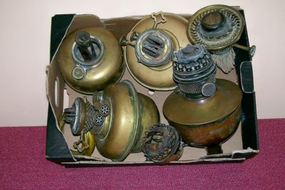 Title (ebay affiliate link): Antique collection of brass oil lamp bases and burners for spare parts.