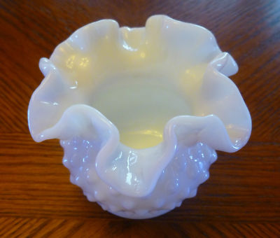 Fenton Crimp Hobnail White Milk Glass Rose Bowl