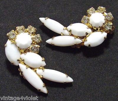 Title (ebay affiliate link): CLASSY Vtg *JULIANA D & E* White Milk Glass RHINESTONE Cluster Earrings