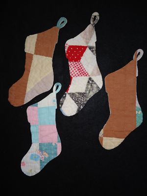 Title (ebay affiliate link): 4 PRIMITIVE ANTIQUE LARGE CUTTER QUILT CHRISTMAS SANTA STOCKINGS - 10"