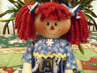 PRIMITIVE RAGGEDY ANN TYPE DOLL BLUE SNOWMAN FABRIC BY YELLOWSWEETPOTATO~C&PLG