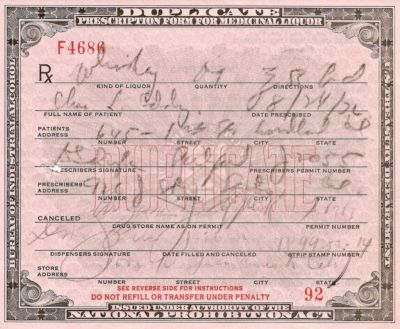 Title (ebay affiliate link): Vintage California PROHIBITION WHISKEY Drug PRESCRIPTION Pharmacy Bar Brewer