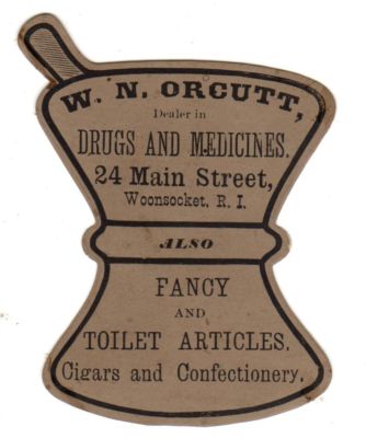Title (ebay affiliate link): NICE 1880's Figural Trade Card- Mortar and Pestle- Woonsocket, R.I. Druggist