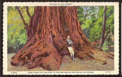 CA California Big Basin Father of the forest 5,000 year old tree Linen Postcard