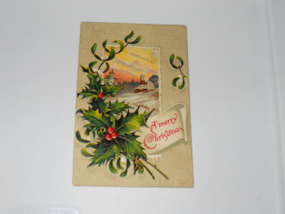 Title (ebay affiliate link): Vintage early 1900 Embossed Christmas Postcard-Holly & winter scene