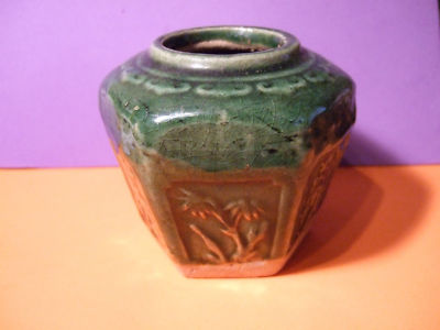 Vintage Antique Chinese Stoneware Ginger Jar W/Greenglaze