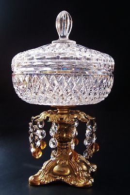 Title (ebay affiliate link): Vintage Estate German Crystal & Brass, Covered Compote w/ Swarovski Crystals