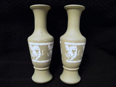 Antique Pair of Vases Stenciled "Girl by tree with hat"