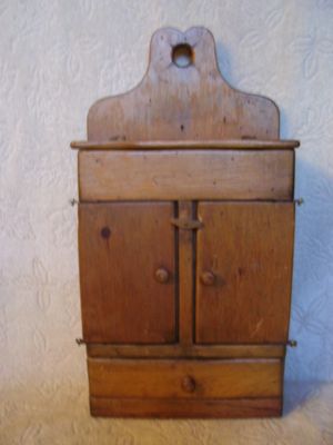 Vintage Folk Tramp Art Wood Wall Cabinet