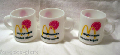 Title (ebay affiliate link): Lot of 3 Vintage McDonald's Breakfast Brigade Mugs 1970's NEW Milk Glass NR