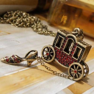 Title (ebay affiliate link): Vintage Bronze Old Car and High-heeled Shoe With Rhinestone Long Necklace