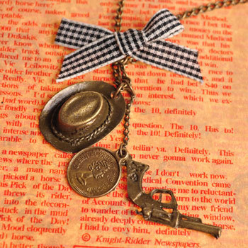 Title (ebay affiliate link): New Fashion Antique Copper Viatage Hat Gun Necklace&Pendant FN576