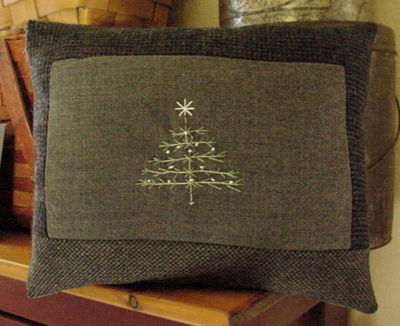 Title (ebay affiliate link): Primitive Pine Tree Hill Christmas Pillow Vintage Wool Nice Prim Colors