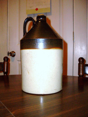 Title (ebay affiliate link): STONEWARE MOONSHINE JUG GLAZED BROWN AND CREAM 1 GALLON