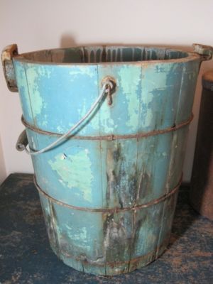 Title (ebay affiliate link): Shabby Blue Grungy Wooden Farm Pail Bucket Primitive Antique Planter Find Wood