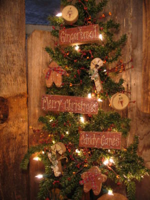 Title (ebay affiliate link): 9 Primitive Sign Ornies ~ GINGERBREAD CANDY CANES MERRY CHRISTMAS Glittered OOAK