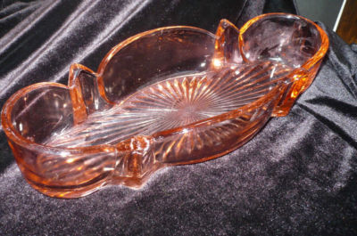 Title (ebay affiliate link): PINK DEPRESSION ELEGANT GLASS CELERY DRESSER DISH TRAY FOR COMBS 'RAYS' 10.5"