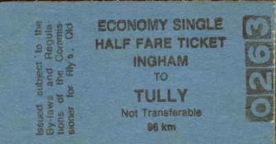 Railway ticket Queensland Ingham to Tully half fare single unused