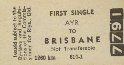 Title (ebay affiliate link): Railway ticket Queensland Ayr to Brisbane first class single adult unused