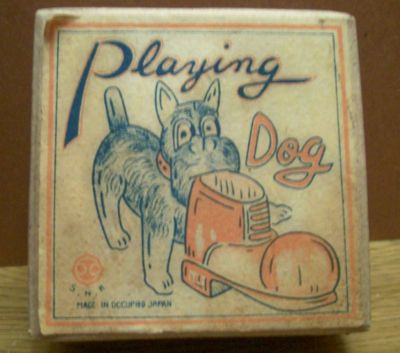 Title (ebay affiliate link): OCCUPIED JAPAN PLAYING DOG WITH SHOE ORIGINAL BOX & KEY
