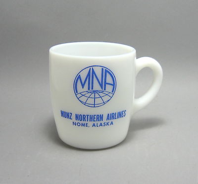 Title (ebay affiliate link): Vintage Airlines Mug Advertising Logo Munz Northern Nome Alaska Milk Glass