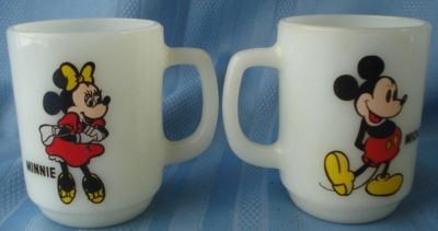 Title (ebay affiliate link): VINTAGE DISNEY ANCHOR HOCKING MILK GLASS MICKEY & MINNIE MOUSE PEPSI~COFFEE MUGS
