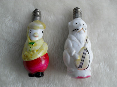 Title (ebay affiliate link): 2 Vintage Figural Milk Glass Light Bulbs - Dressed Duck & Cat with Mandolin -
