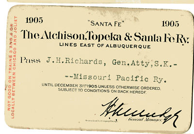 Title (ebay affiliate link): THE ATCHISON,TOPEKA AND SANTA FE RWY 1905 ANNUAL PASS