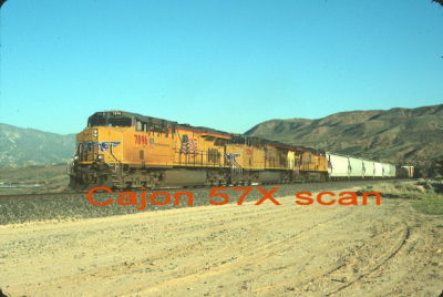 Original slide- UP ES44AC #7896 & Train In Cajon Pass