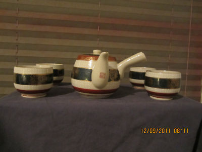 KUTANI 7 PIECE TEA SET-HANDPAINTED WITH GOLD PLATED RIMS