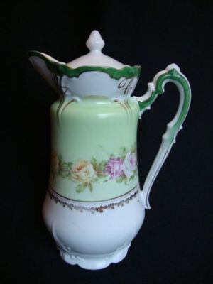 ANTIQUE PORCELAIN CHOCOLATE POT-CABBAGE ROSES