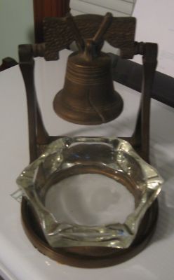 Title (ebay affiliate link): VINTAGE JOHNSON BRONZE METAL SWINGING LIBERTY BELL TRAY