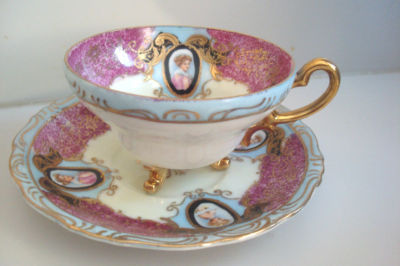 FOOTED CUP AND SAUCER FINE CHINA HANDPAINTED NUMBERED NORCREST