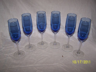 "VINTAGE" 6 BEAUTIFUL "COBALT BLUE" FOOTED WINE GLASSES (? CRYSTAL)
