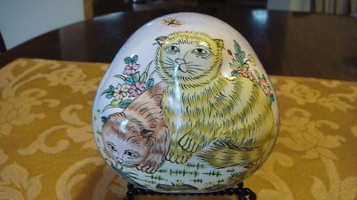 VINTAGE HANDPAINTED ENAMEL ON COPPER CAT BOX