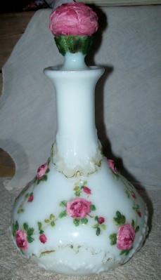 FANCY ANTIQUE GLASS DECORATIVE DECANTER W/ ROSES MOTIF DESIGNS