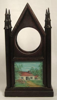 Title (ebay affiliate link): SMALL ANTIQUE REVERSE PAINTED PANEL MAHOGANY STEEPLE CLOCK CASE ONLY- REAL CUTE!