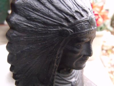 Antique Cast Iron Native American Indian Door Stop Doorstop Great Book End Too!
