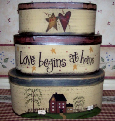 Title (ebay affiliate link): SET~PRIMITIVE SHAKER BOXES~LOVE BEGINS HOME HEART~STAR~SHEEP~SALTBOX HOUSE~