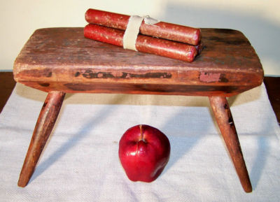 Title (ebay affiliate link): AAFA Mid-1800's Wooden Cricket Stool, Old Red Paint, Splayed Legs, A Classic